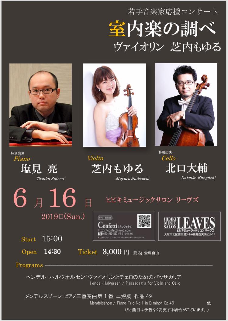 本校音楽科卒業生の芝内もゆるさんの演奏会を紹介します。若手音楽家応援コンサート 室内楽の調べ日時:2019年6月16日(日) 15:00開演(14:30開場)会場:ヒビキミュージックサロン リーヴズ入場料:3,000円(全席自由) ぜひ、芝内もゆるさんの演奏を聴きに、足をお運びください。